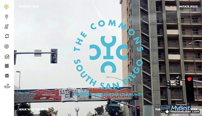 Сайт thecommons.church имеет очень сложный дизайн пользовательского интерфейса. Он сосредоточен в левой части экрана, выдвигается в полноценное меню и имеет элементы интерактивности. Это один из лучших сайтов, если мы говорим про примеры церковных сайтов!