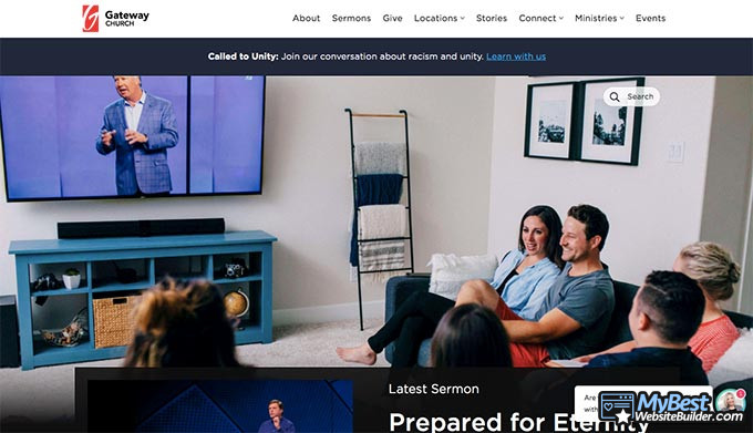 Часовня Gateway - это очень информативный пример дизайна церкви. Может показаться, что сайт вот-вот пересечёт линию для слишком большого количества информации для посетителя на главной странице, но всё оказывается "в меру" - на сайте вы также можете найти некоторые источники, которые вы можете посетить.