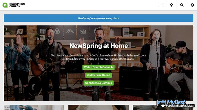 Интересно в newspring.cc то, что на первый взгляд этот церковный сайт создан в виде обычного портфолио. В основном такое впечатление создаётся за счёт сеток на их главной странице - хотя всё же, он простой в навигации и имеет достаточно ресурсов для вашего посещения.