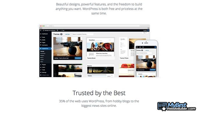 И последнее - WordPress полностью бесплатен в использовании. Всё, что вам нужно - это доменное имя и провайдер услуг хостинга, это всё. Убедитесь, что вы используете .org версию WP - WordPress.com это абсолютно другая вещь со своими плюсами и минусами!