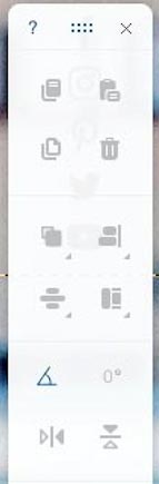 Это меню позволяет вам копировать и помещать, распределять и выравнивать различные элементы, устанавливать определённые позиции, углы и так далее. Варианты для настройки будут зависеть от того, какую именно деталь сайта вы хотите отредактировать.