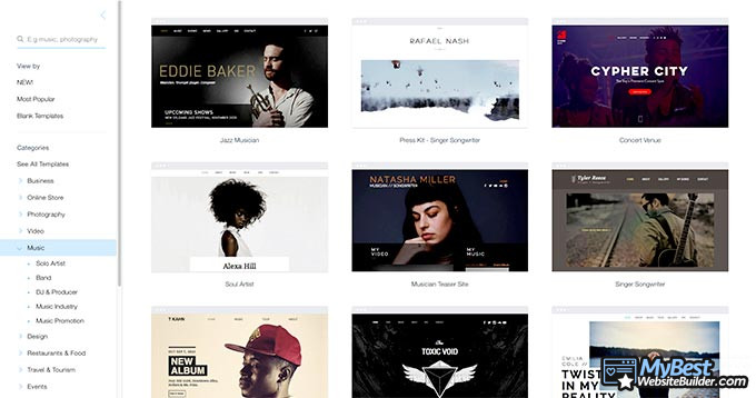 Wix предлагает вам просто огромное количество разнообразных шаблонов на выбор из различных категорий. Кстати, если вы собираетесь создать блог, то вам не обязательно выбирать шаблон из категории для блога - это просто рекомендация, а никак не указание.