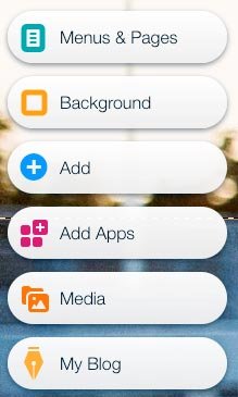 Слева вы сможете найти отдельное меню, где сможете добавлять новые страницы, приложения, медиафайлы, изменить задний фон и так далее.