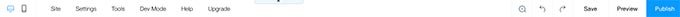 Вверху страницы конструктора вы сможете найти главное меню. Его необходимо использовать для навигации по вашему сайту, переключения между мобильной и стандартной версией сайта, использовать инструменты, получать доступ к настройкам, делать предпросмотр сайта и публикацию изменений, которые вы внесли на сайт.
