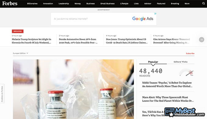 Forbes является идеальным примером макета сайта, который нацелен на новостную тематику, но всё равно поддерживает чистый и организованный дизайн сайта.