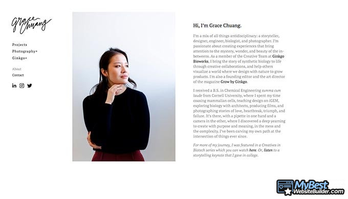 Однако запомните, что практически все упомянутые сайты были созданы с помощью конструкторов сайтов - в основном Squarespace, но конструкторы вроде Webflow тоже хорошо выполняют свою работу. Обратите на это внимание при выборе лучшего конструктора сайтов для вас!