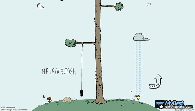 Без каких-либо сомнений это один из самых интересных и весёлых свадебных сайтов. Он не имеет отдельных разделов, а вместо этого предлагает интерактивный опыт - в то время как вы "карабкаетесь на дерево" всё выше и выше, появляется больше информации о свадьбе. Превосходно!