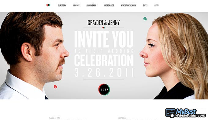 RSVP (приглашение), контактные формы, разделы "О нас" и "Информация", галереи - большинство функций, которые вам могут понадобиться, очень просты и понятны. Хотя слово "большинство" здесь играет ключевую роль - например, вам может быть немного трудно найти конструктор сайтов, который бы имел полностью работающую функцию RSPV.