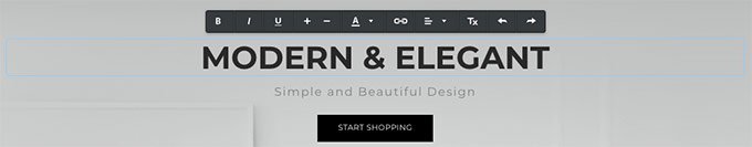 - Начало редактирования текста, заднего фона, страниц, добавление элементов, товаров и так далее.