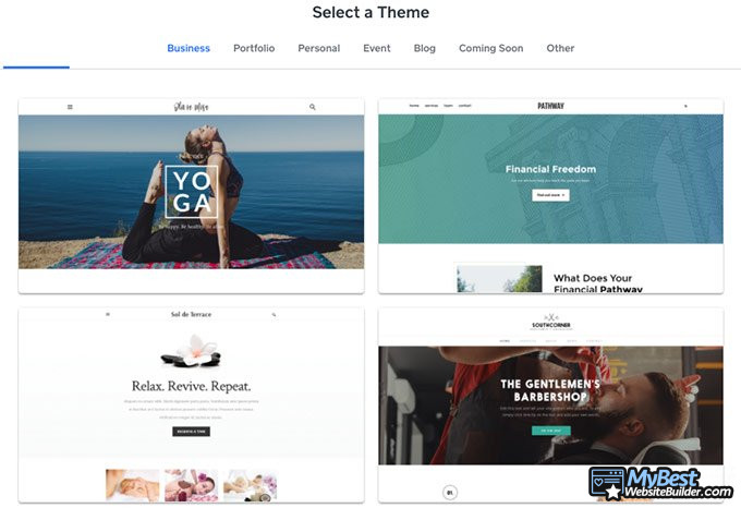 - Бизнес - шаблоны для ресторанов, барбершопов, студий йоги, финансовых услуг, инноваций и так далее.